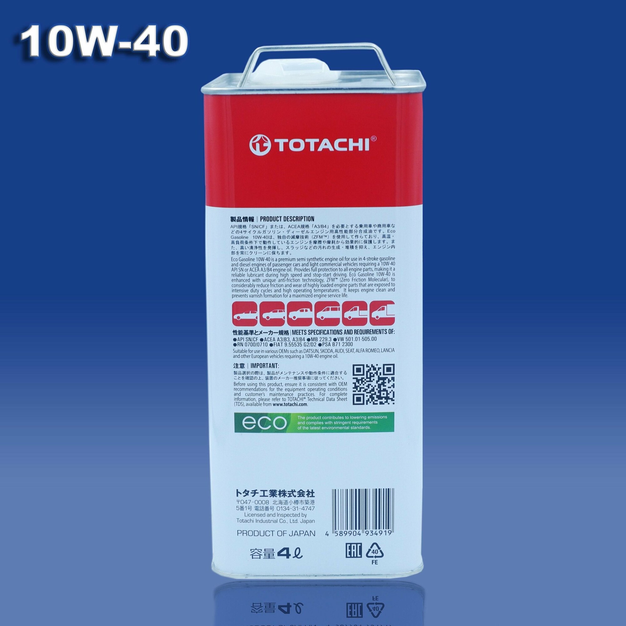 TOTACHI 10904 Масло моторное TOTACHI Eco Gasoline SN/CF 10W40 4л