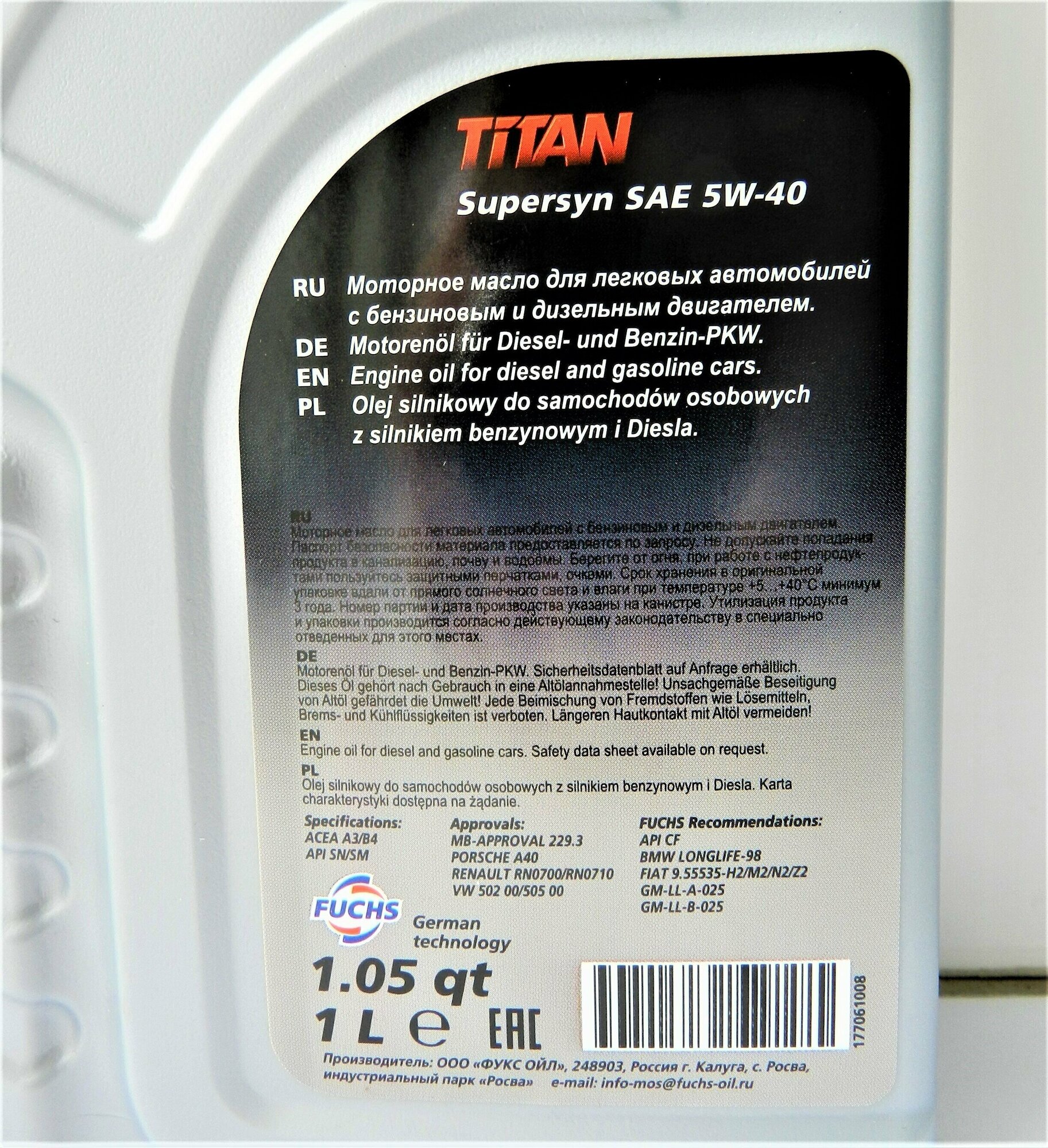 TITAN 600930745 масо FUCHS TITAN SUPERSYN 5W-40 1