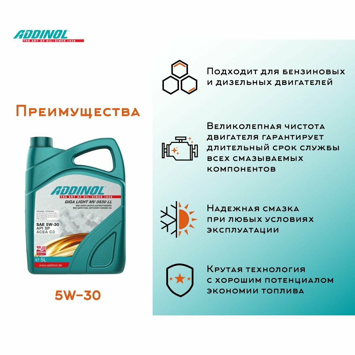 Синтетическое моторное масло ADDINOL Giga Light MV 0530 LL SAE 5W-30, 5 л