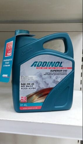Ниже Вы можете прочитать отзывы на Addinol Superior 040 0W-40 4л., ознакомится с подробными характеристиками, посмотреть интересные обзоры и фотографии на Addinol Superior 040 0W-40 4л..