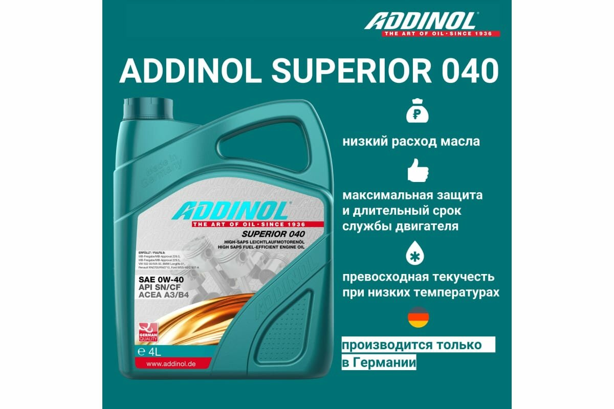 СохранитьAddinol Superior 040 0W-40 4л. интересное: