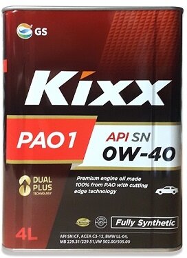 Kixx Масло Моторное 0W40 Kixx 4Л Синтетика Pao 1 Api Sn Acea A3/B4/C3