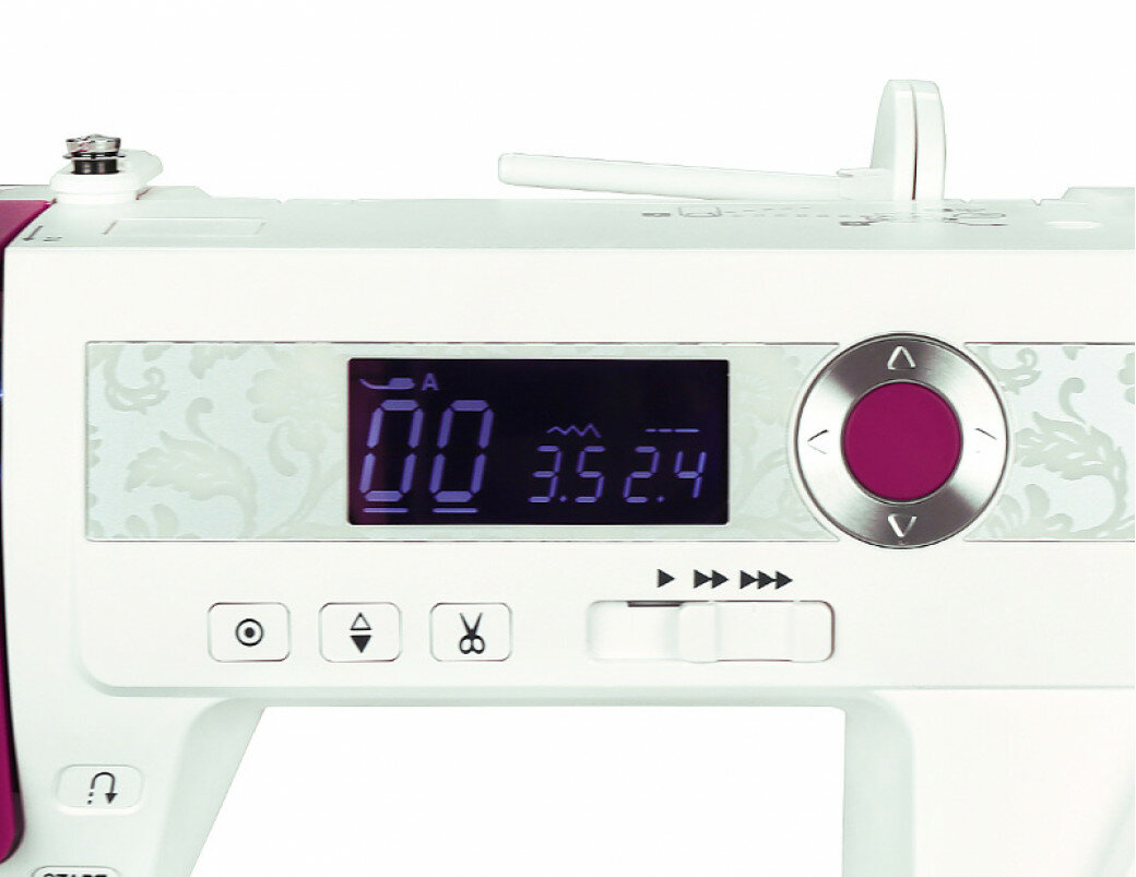 | Плюсы: | Работает тихо и не тарахтит, очень плавный ход, что хорошо для тонких тканей, на дисплее подсказки. |