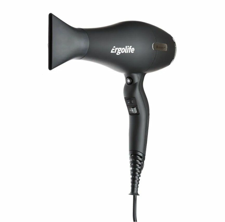 Фен DEWAL PRO ERGOLIFE c ионизацией, черный софт тач, вес 590 гр, 2200 Вт, 2 насадки, провод 3 м 03-001 Black