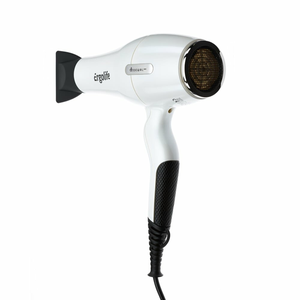 Фен DEWAL ERGOLIFE, белый, вес 590гр, 2200Вт, ионизация, 2 нас, провод 3м