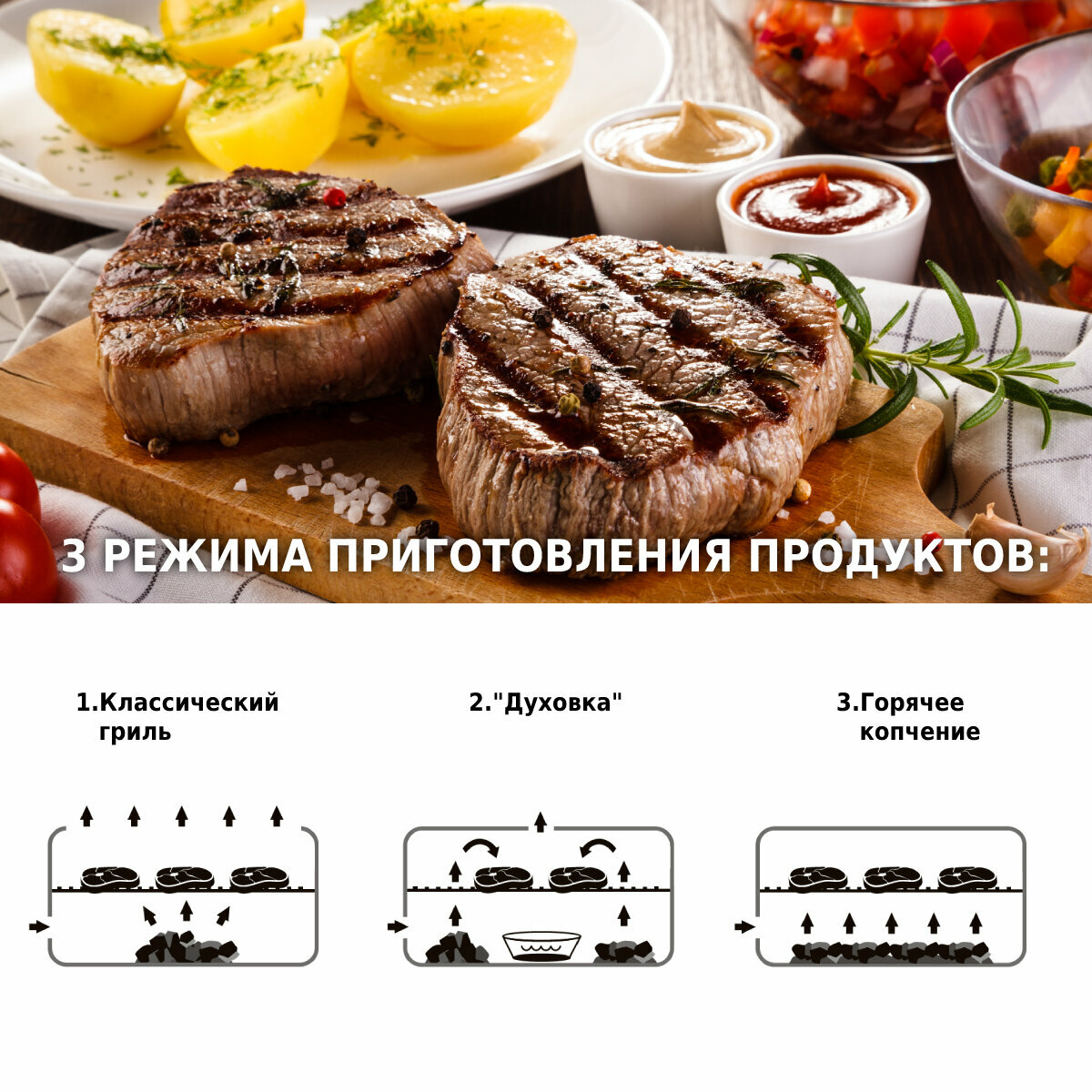 | Плюсы: | Удобный гриль для дачи. Легко транспортировать и чистить. Нижняя часть не раскаляется сильно, ножки всегда остаются холодными, можно не боятся если собака допустим подойдет понюхать гриль, да и двигать его безопасно. Специально выбирал без отверстий в нижней части, чтобы можно было на деревянной лоджии ставить смело и угли и пепел вниз не сыпались, потому что у грилей у которых внизу якобы "чашка" под угольки - при малейшем ветре всё разносится по полу. Раз 10 уже точно успели воспользоваться за 2 месяца пользования. Пока вся конструкция терпит, хотя решетка под угли на 3-й раз уже прогнулась... Удобные отверстия-поддув по бокам, правда задвигать их вручную точно никак, использую плоскогубцы. Благодаря этим отверстиям и лючку в крышке можно достаточно неплохо (на 3 из 5) готовить стейки, для этого купил еще специальный термометр с щупом за 190 руб, который просто вставляю в лючок верхний когда закрываю крышку... Крышка удобная, надежно держится в разных положениях, легко пользоваться и спасает когда нужно чтобы шашлык или овощи "дотомились" на слабых углях. В общем и целом, пока нет полноценного стационарного барбекю места - отличное и недорогое решение для дачи. |