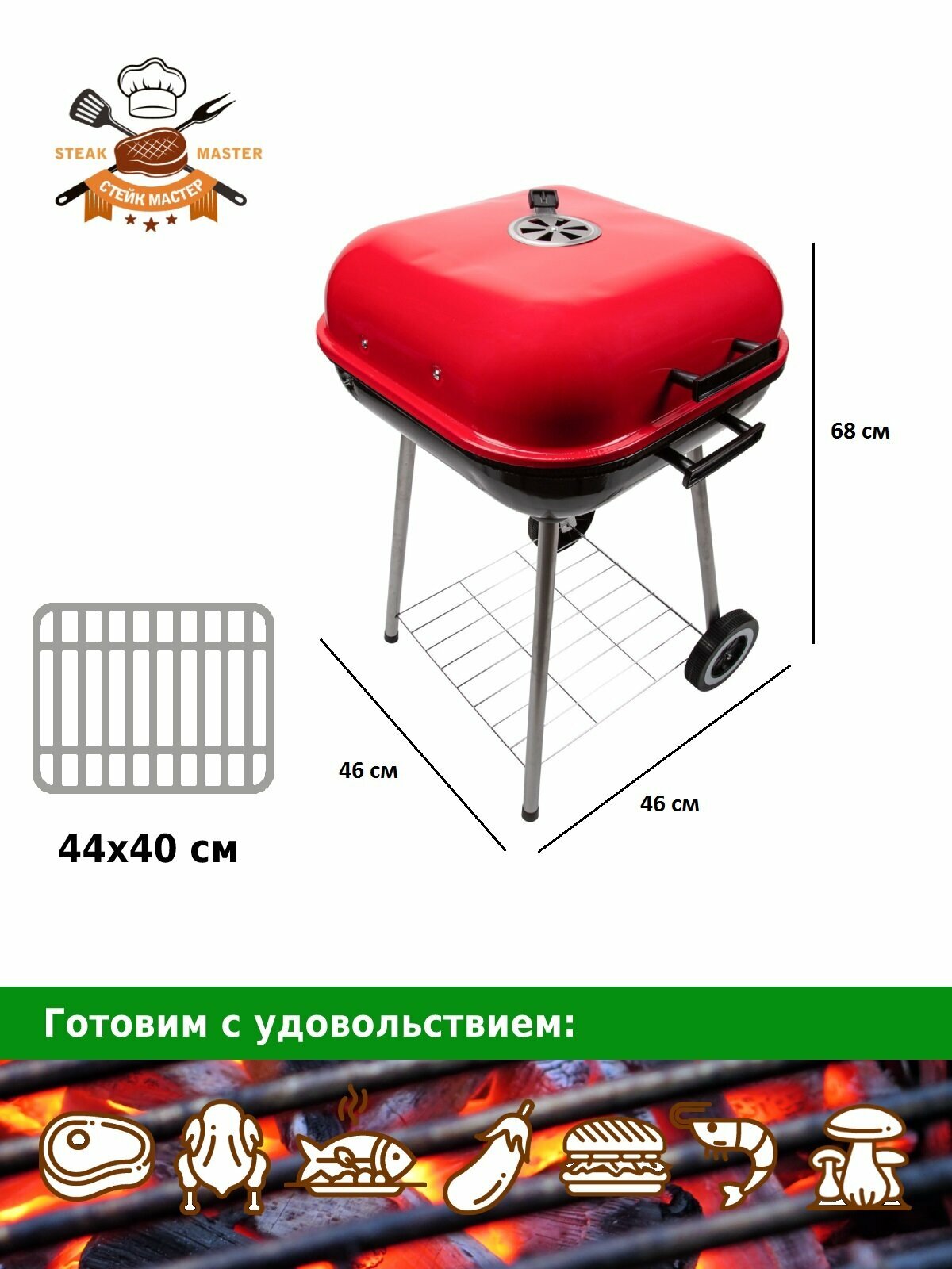 | Минусы: | тонковат металл, но и цена соответствует. в основном не понравилось то, что решетка близко к углям, приходится меньше углей сыпать, чтобы не горело. и то, что крышка не откидывается до конца - становится вертикально и весь дым в лицо... |