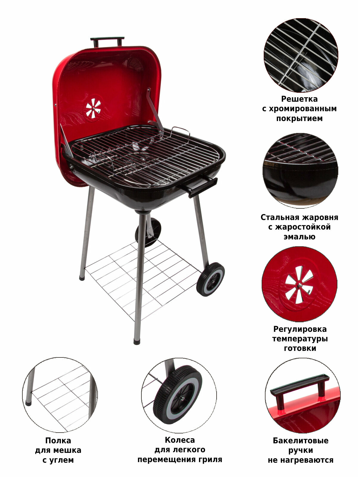 | Плюсы: | Удобный и компактный гриль! Простая сборка и удобное использование! Легкость транспортировки и обслуживания! |