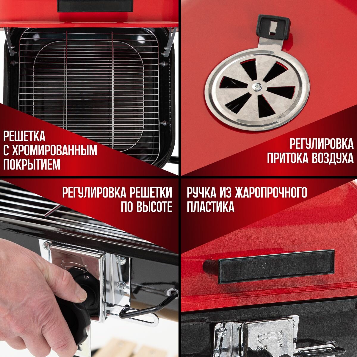 | Минусы: | Быстро гаснет огонь при закрытой крышке, небольшое расстояние до углей |