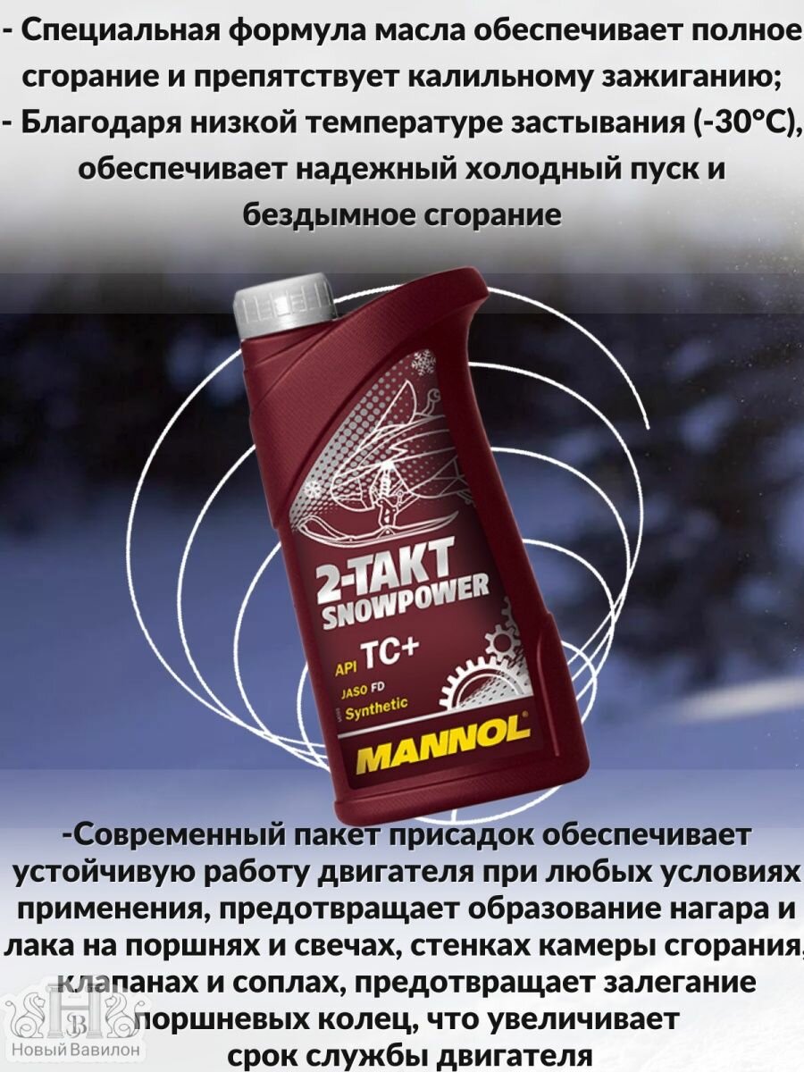 Ниже Вы можете прочитать отзывы на Синтетическое моторное масло Mannol 2-Takt Snowpower, 1 л, ознакомится с подробными характеристиками, посмотреть интересные обзоры и фотографии на Синтетическое моторное масло Mannol 2-Takt Snowpower, 1 л.