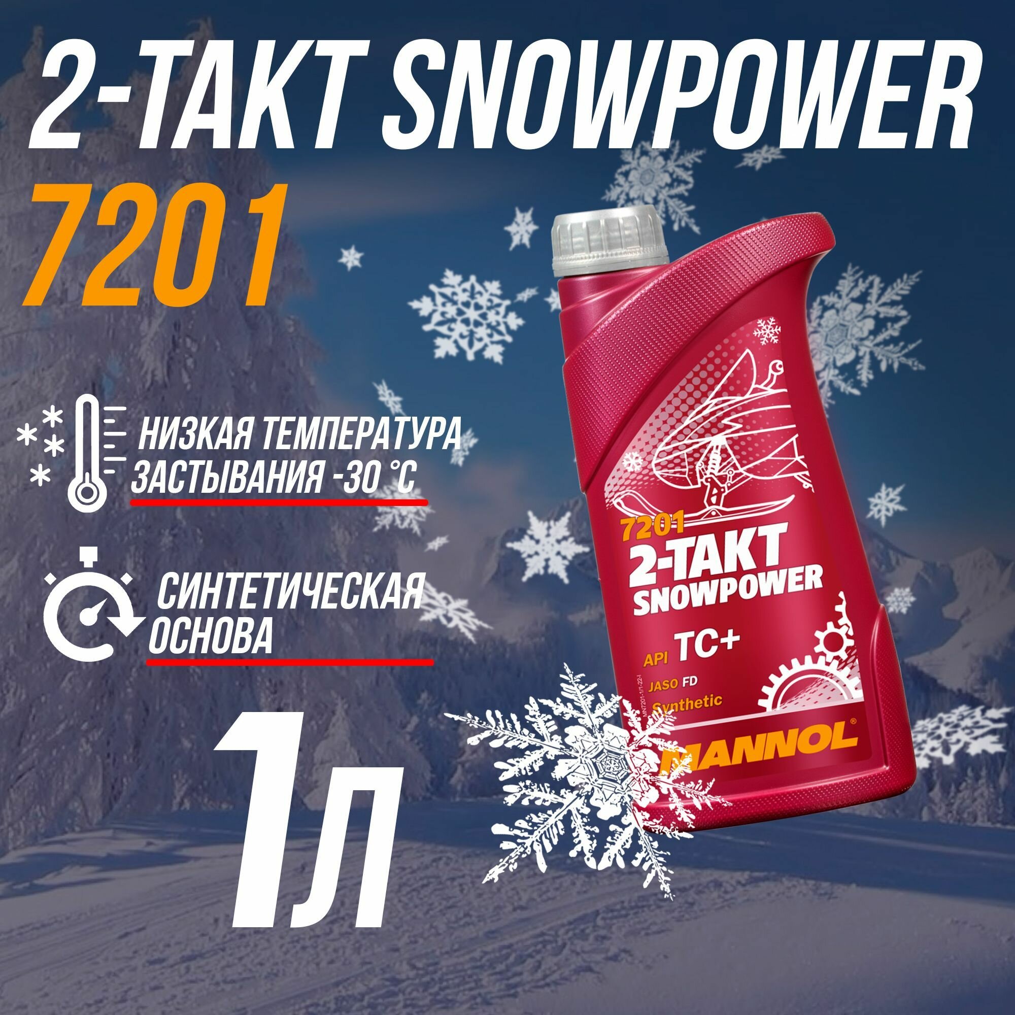MANNOL MN7201-1 7201-1 MANNOL 2-TAKT SNOWPOWER Синтетическое моторное масло для снегоходов (2T) 1л
