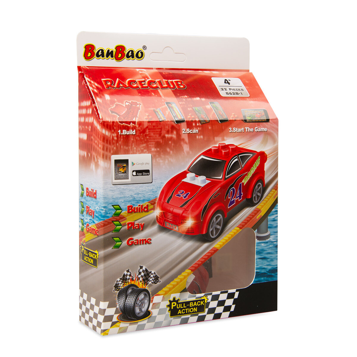 Купить Машина красная/зеленая инерционная, 23 детали (+игра в Google Play & AppStore) конструктор Banbao 8628-1/2