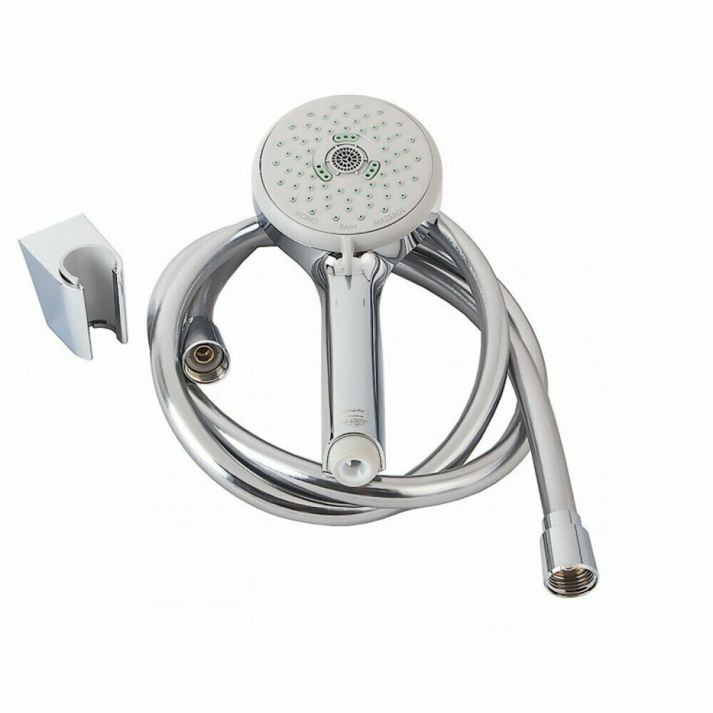 | Дополнительная информация | переключение режимов душа: поворотное; режимы потока воды от производителя: rain, mono струя, massage jet; диаметр душевой лейки: 100 мм |