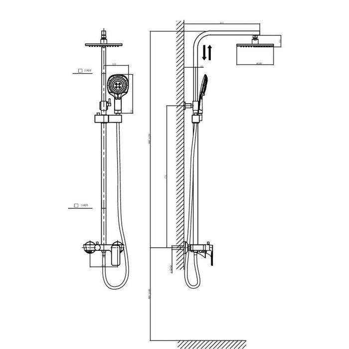 | Дополнительная информация | высота стойки для душа: 1250 мм; диаметр душевой лейки: 115 мм; длина верхнего душа: 220 мм; ширина верхнего душа: 220 мм |