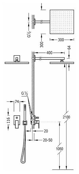| Дополнительная информация | покрытие изделия: хром, матовый хром; длина верхнего душа: 300 мм; ширина верхнего душа: 300 мм |