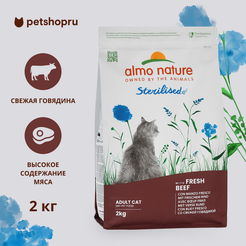 СохранитьAlmo Nature Для кастрированных кошек с говядиной и рисом, Functional Adult Sterilised Beef and Rice 2кг интересное:
