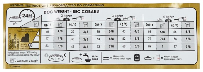 | Дозировка | см. таблицу. Корм готов к употреблению. Проследите, чтобы у вашей собаки всегда была свежая вода |