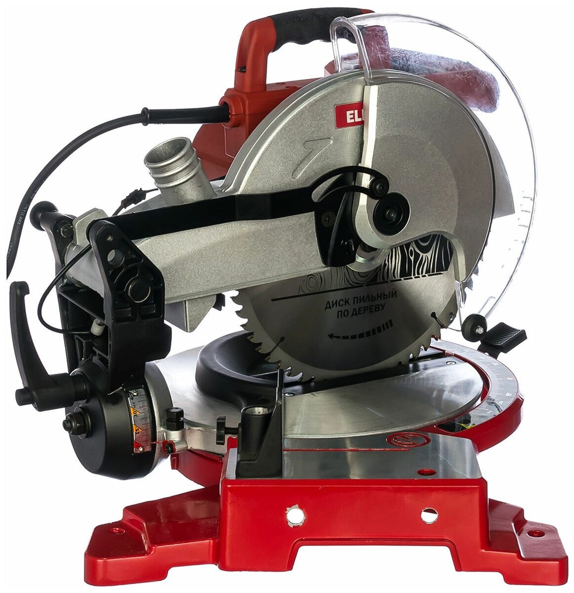 | Комплект поставки | твердосплавный диск по дереву, защитный кожух пильного диска, поворотная платформа с разметкой угла поворота 45°/45°, фиксатор стандартных углов распила, упаковка |