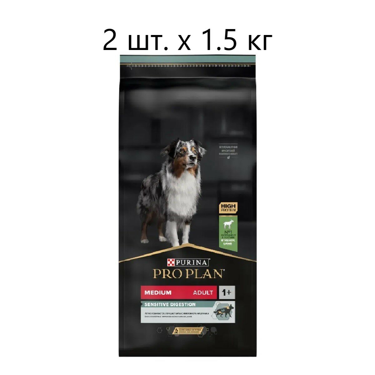 Купить Сухой корм Pro Plan для взрослых собак средних пород с чувствительным пищеварением, с высоким содержанием ягненка 1,5 кг х 2 шт
