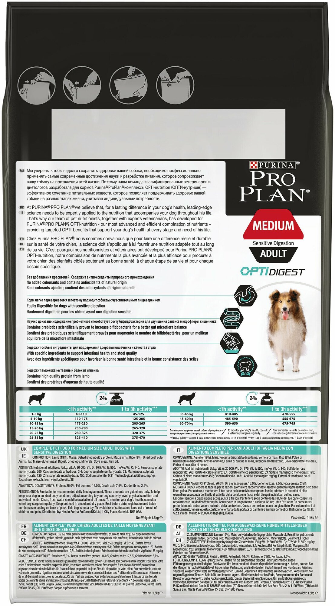 Корм для собак ProPlan 1,5кг Adult Medium Sensitive Digestion д/взрослых/средних чувствительное пищеварение ягненок/рис 60399