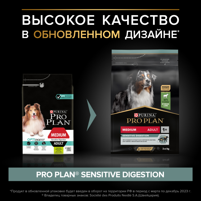 PRO PLAN ADULT DOG MEDIUM SENSITIVE DIGESTION для взрослых собак средних пород с чувствительным пищеварением с ягненком и рисом (3 кг)