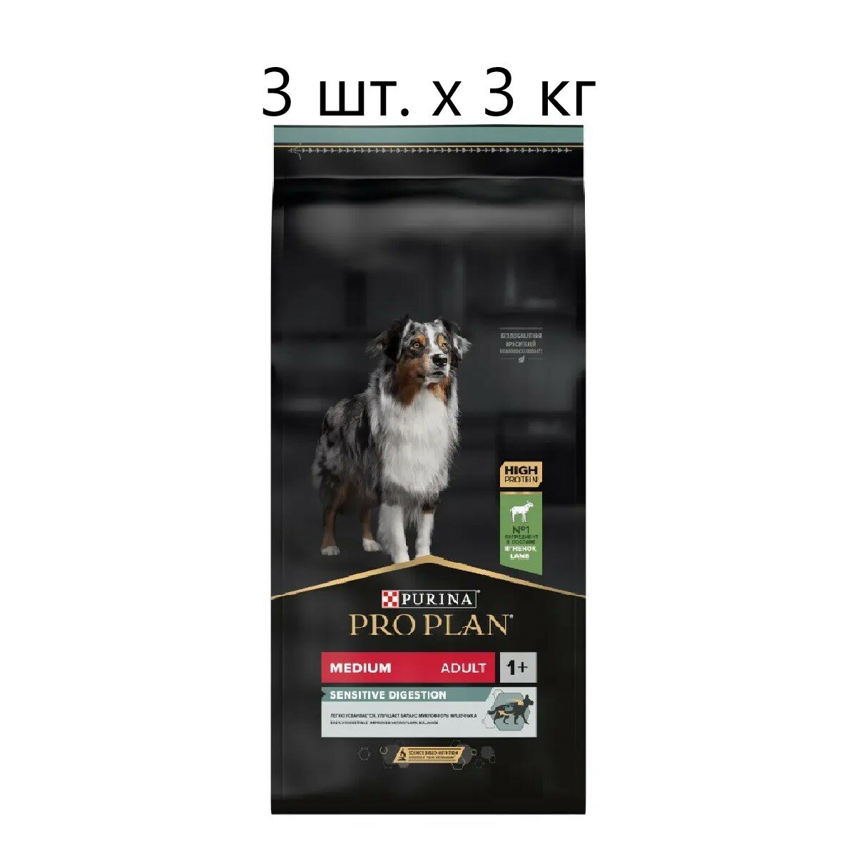 Купить Сухой корм Pro Planдля взрослых собак средних пород с чувствительным пищеварением, с высоким содержанием ягненка, Пакет, 3 кг х 3 шт