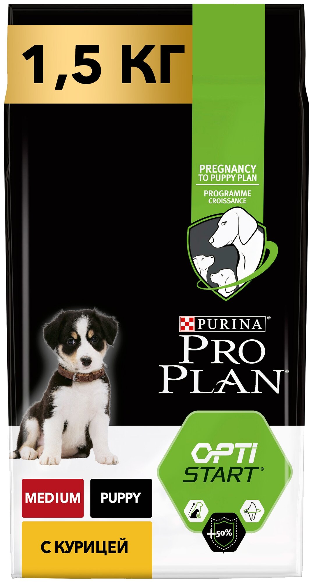 Сухой корм для щенков Pro Plan Optistart, курица 1 уп. х 1 шт. х 1.5 кг (для средних пород)