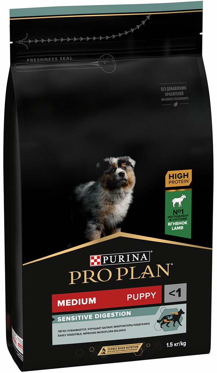 Купить PRO PLAN OPTIDIGEST PUPPY MEDIUM SENSITIVE DIGESTION для щенков средних пород с чувствительным пищеварением с ягненком и рисом (1,5 + 1,5 кг)