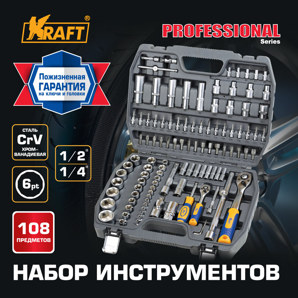 Купить Kraft Набор инструмента 1/2 Dr и 1/4 Dr 108 предметов KT 700300 .