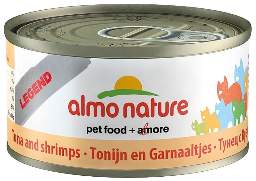 Корм влажный Almo Nature Legend для кошек с Тунцом и Креветками 75% мяса 70гр