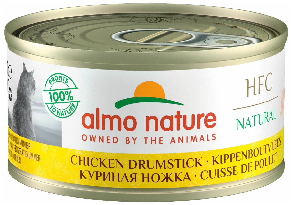 Almo Nature Консервы для кошек "Аппетитные Куриные бедрышки", HFC Adult Cat Chicken Drumstick 70г 0.07 кг