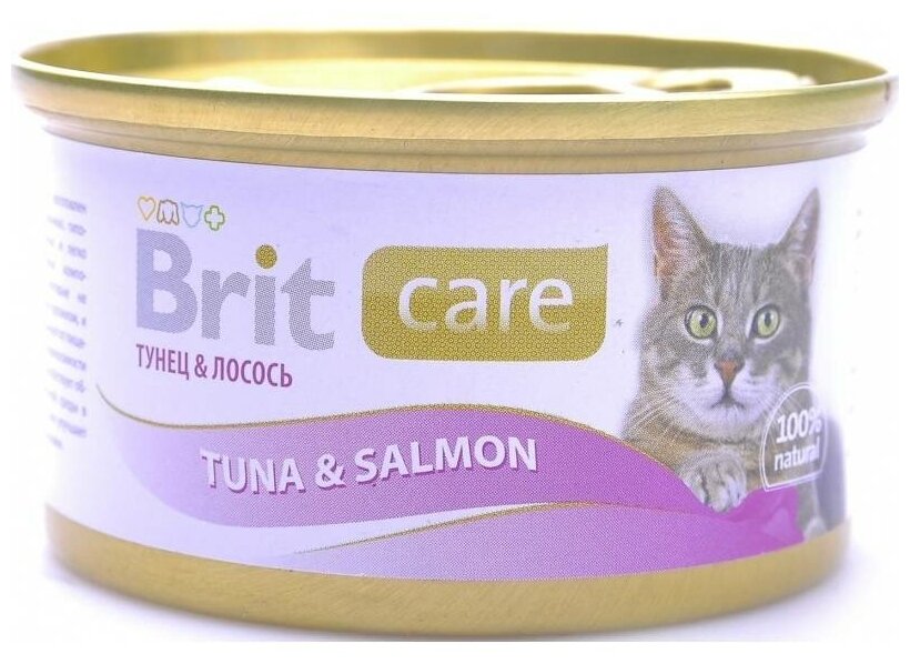 Консервы Brit Care Tuna & Salmon для взрослых кошек с лососем и тунцом,упаковка 12*80г