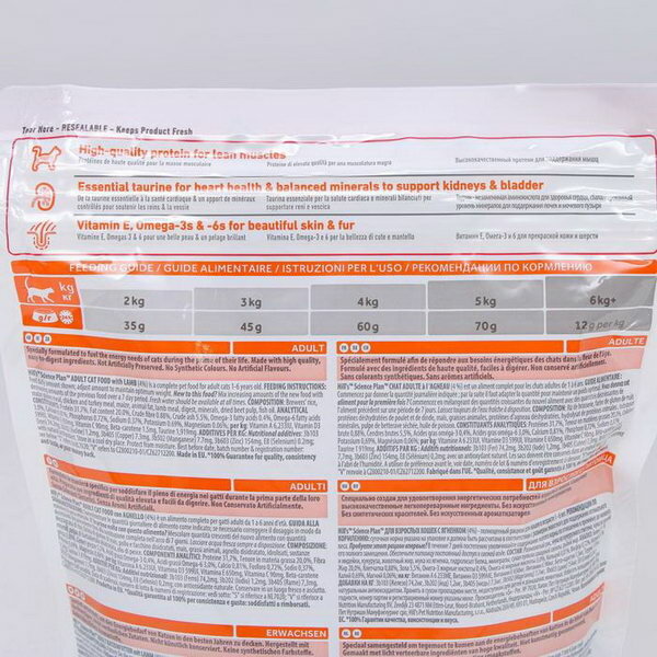 Сухой корм Hill's Science Plan для взрослых кошек для поддержания жизненной энергии и иммунитета, с ягненком, 1,5 кг, 1 пакет