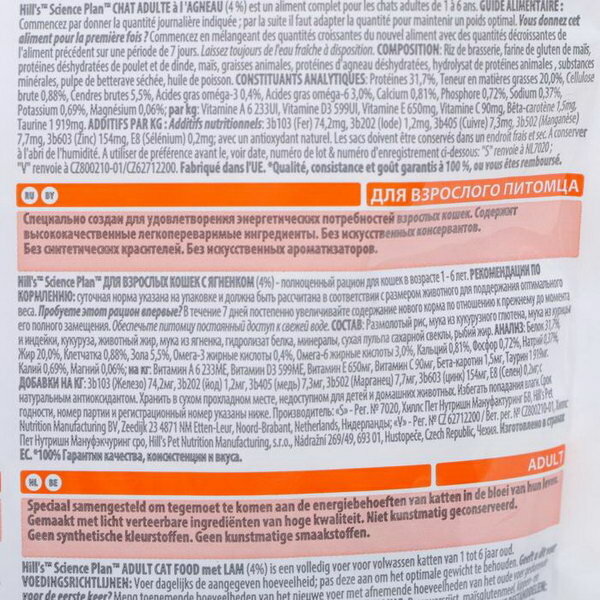 | Дополнительная информация | не рекомендуется для котят и беременных или кормящих кошек; во время беременности или кормления нужно сменить корм на Hill's Science Plan для котят влажный или сухой корм; без искусственных ароматизаторов, красителей и консервантов. |