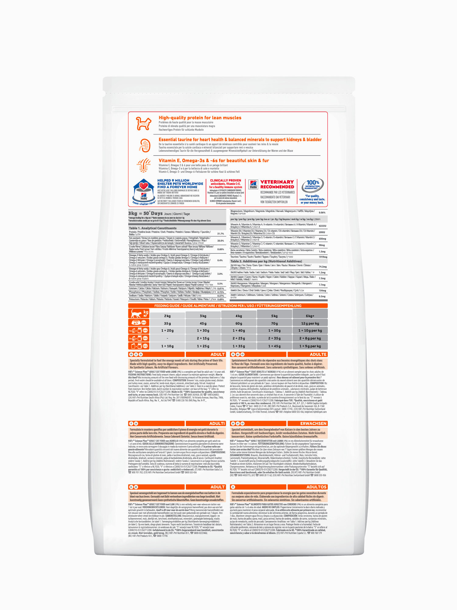 Hill's Science plane Optimal Care для взрослых кошек для поддержания жизненной энергии и иммунитета, с ягненком 3 кг