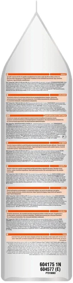 Сухой корм Hill's Science Plan для взрослых кошек для поддержания жизненной энергии и иммунитета, с ягненком, 1,5 кг, 1 пакет