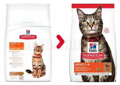 Hill's Science plane Optimal Care для взрослых кошек для поддержания жизненной энергии и иммунитета, с ягненком 3 кг