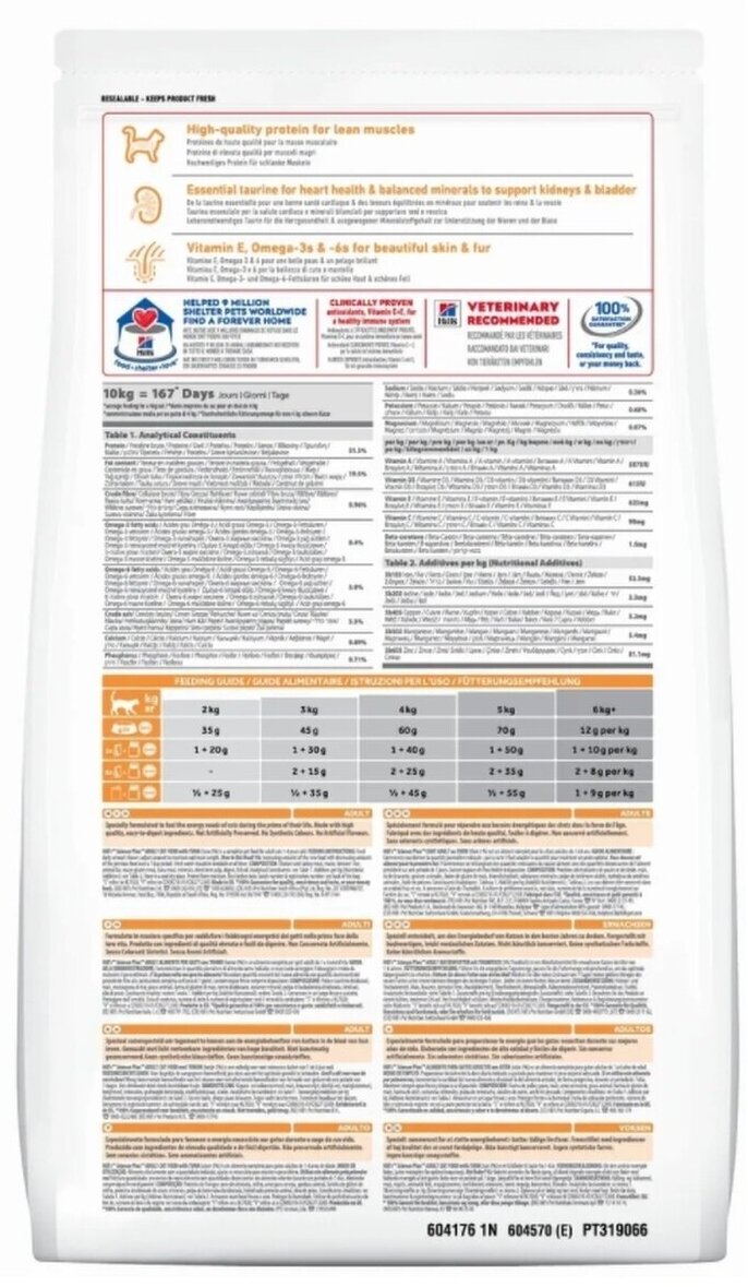 | Дополнительная информация | не рекомендуется для котят и беременных или кормящих кошек; во время беременности или кормления нужно сменить корм на Hill's Science Plan для котят влажный или сухой корм; без искусственных ароматизаторов, красителей и консервантов. |