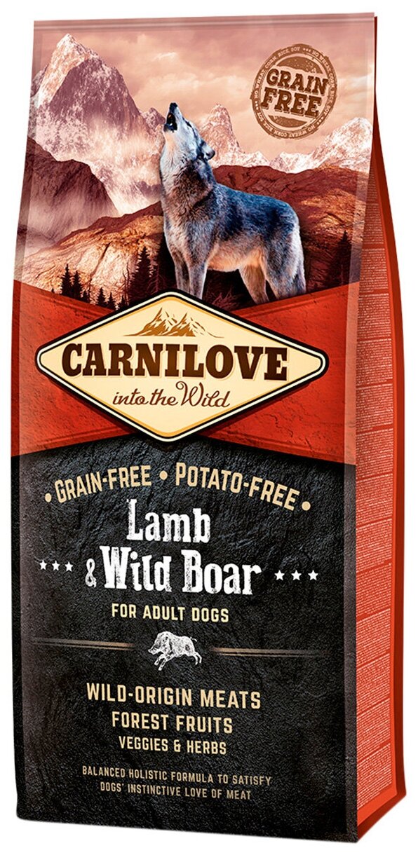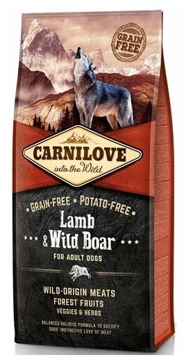 CARNILOVE 1.5кг Корм для взрослых собак всех пород беззерновой Ягненок/дикий кабан интересное: