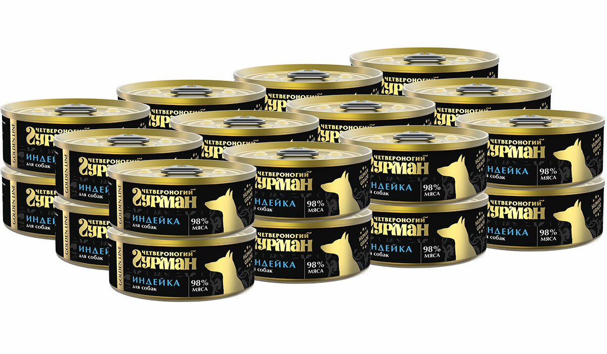 Четвероногий Гурман Golden line консервированный корм с индейкой натуральной в желе для взрослых собак - 100 г (24 шт)
