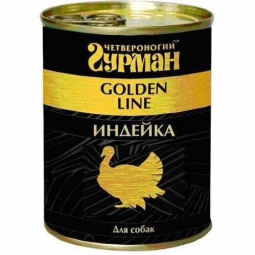 Четвероногий Гурман Golden line консервированный корм с индейкой натуральной в желе для взрослых собак - 340 г (12 шт)