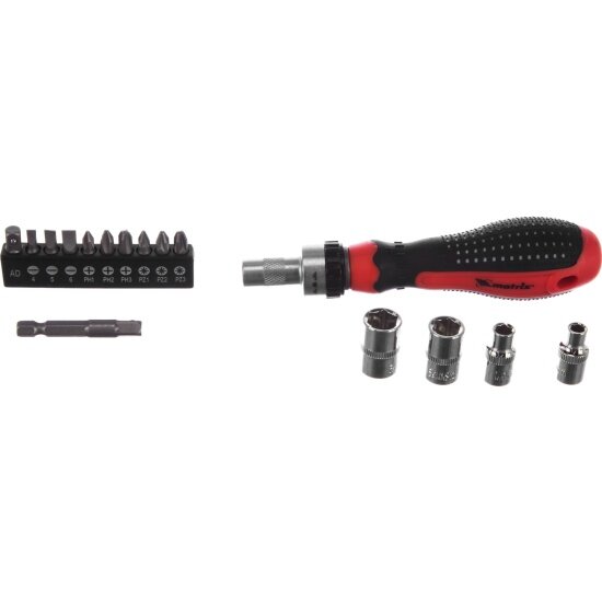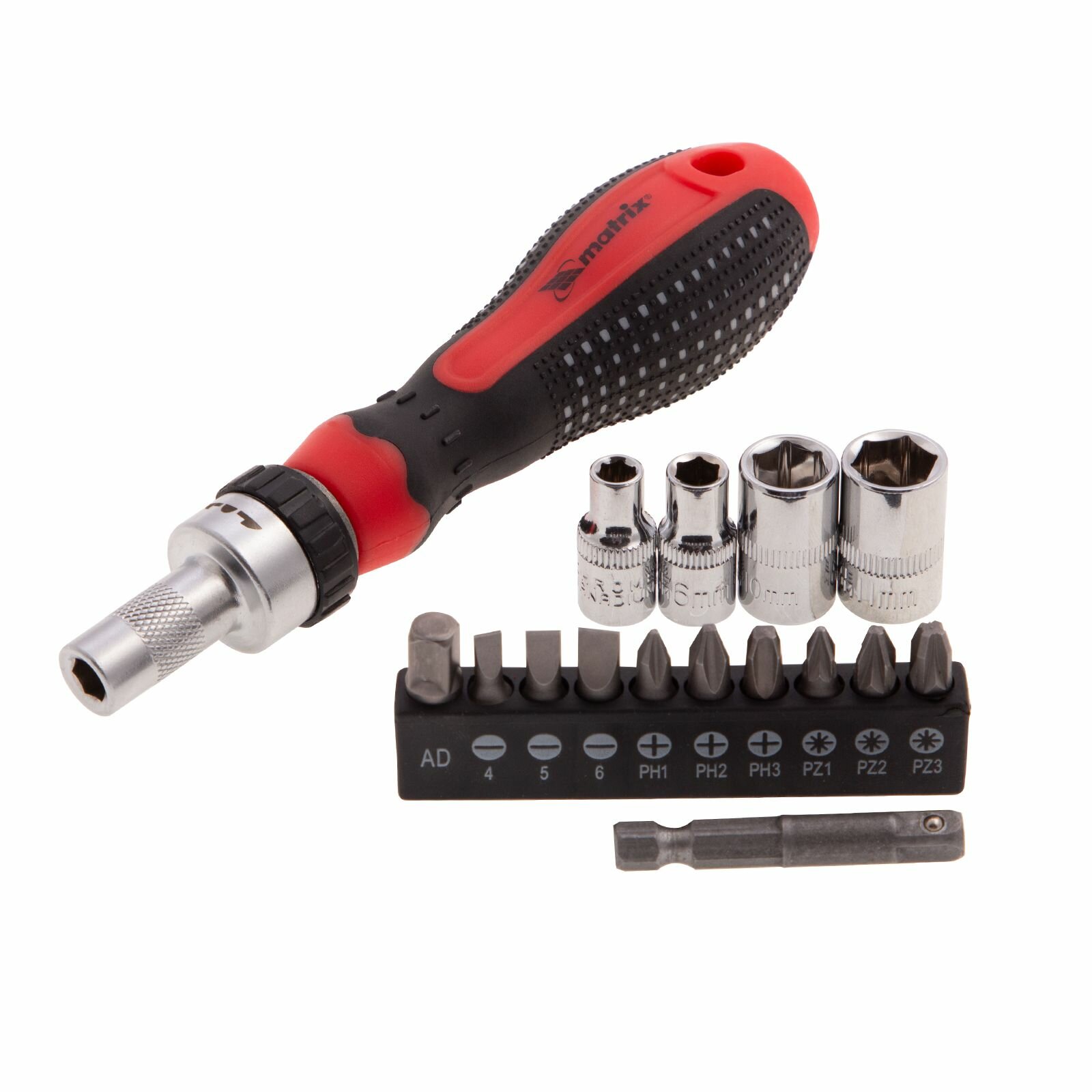 Отвёртка реверсивная с набором бит и насадок торцевых 16шт MATRIX 11332