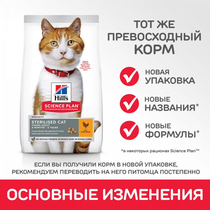 Сухой корм Hills Science Plan для молодых стерилизованных кошек и кастрированных котов, с курицей - 1,5 кг
