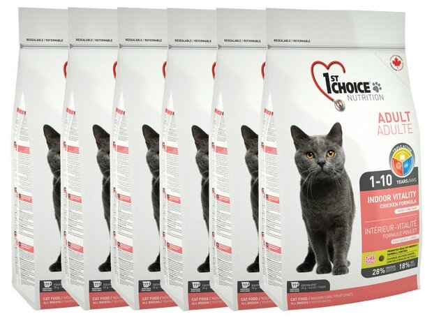 1ST CHOICE CAT ADULT INDOOR VITALITY для взрослых кошек живущих дома с курицей (5,44 кг)