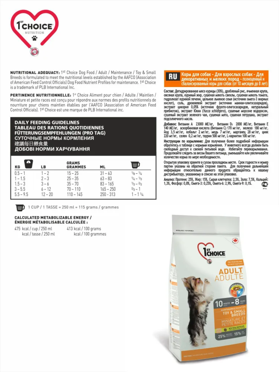 1ST CHOICE DOG ADULT TOY & SMALL BREEDS для взрослых собак маленьких пород с курицей (1 кг)