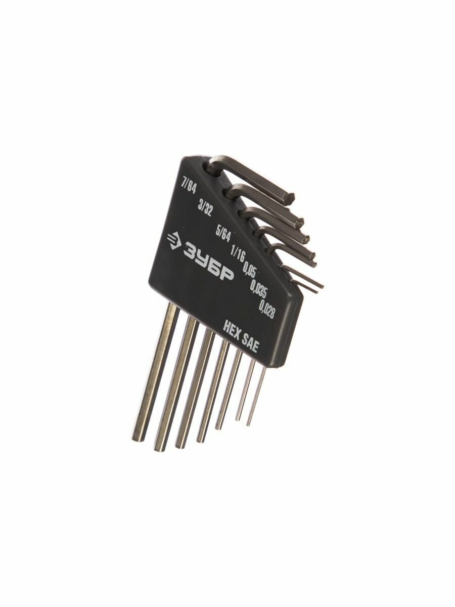 Зубр Набор ключей имбусовых "эксперт" 27475-H7 мини для точных работ, Cr-V,HEX SAE 0,028,0,035,0,05,1 16,5 64,3 32,7 64 дюйма,7шт