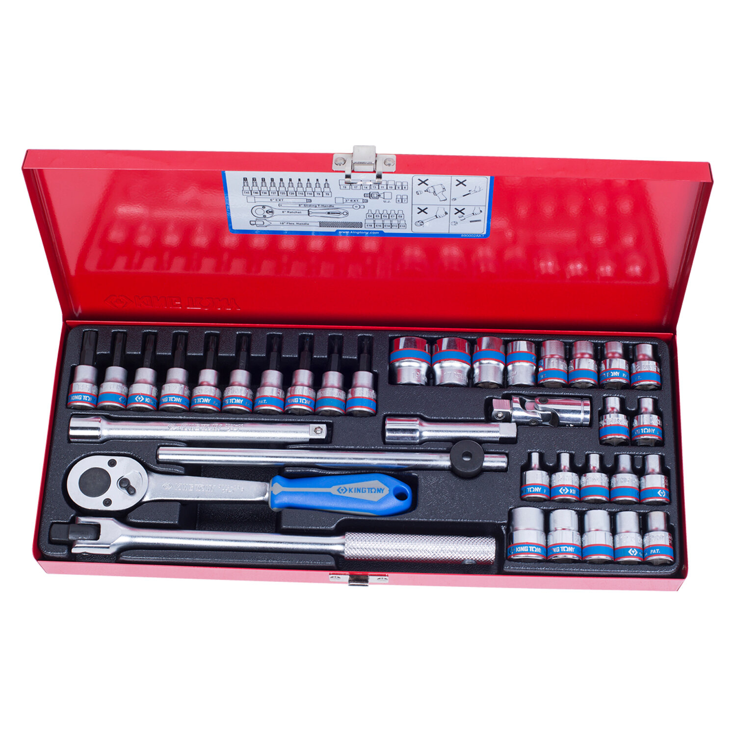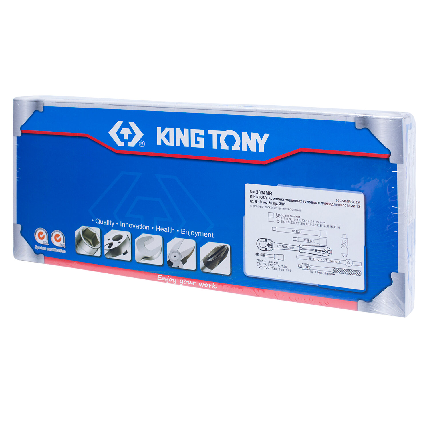 3034MR KING TONY Набор торцевых головок с принадлежностями 3/8", двенадцатигранные, 6-19 мм 36 предметов