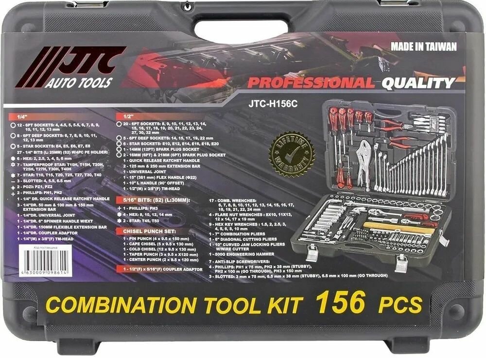 Купить JTC Набор инструментов 1/4" & 1/2" 6-гранный в кейсе 156 предметов JTC-H156C-B72 .