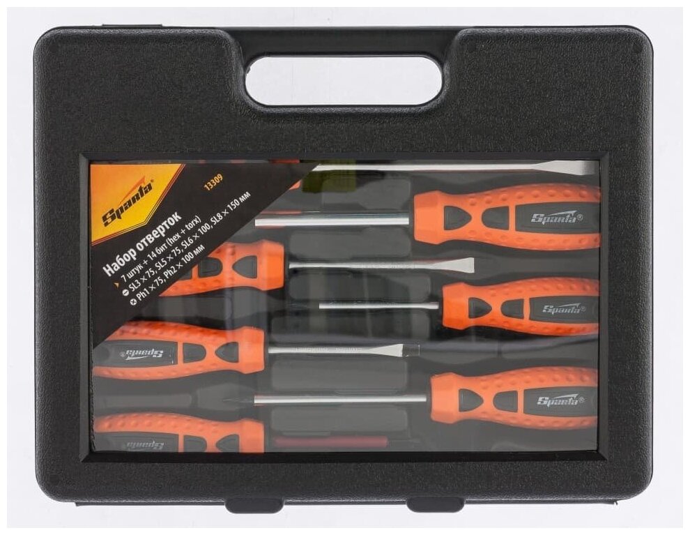 Набор отверток SPARTA 13309 + биты, 21 предмет, оранжевый/черный