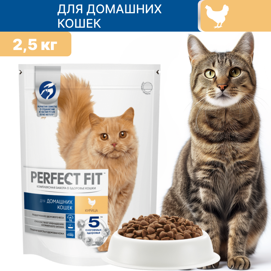 Сухой корм PERFECT FIT для домашних кошек, курица 2.5 кг